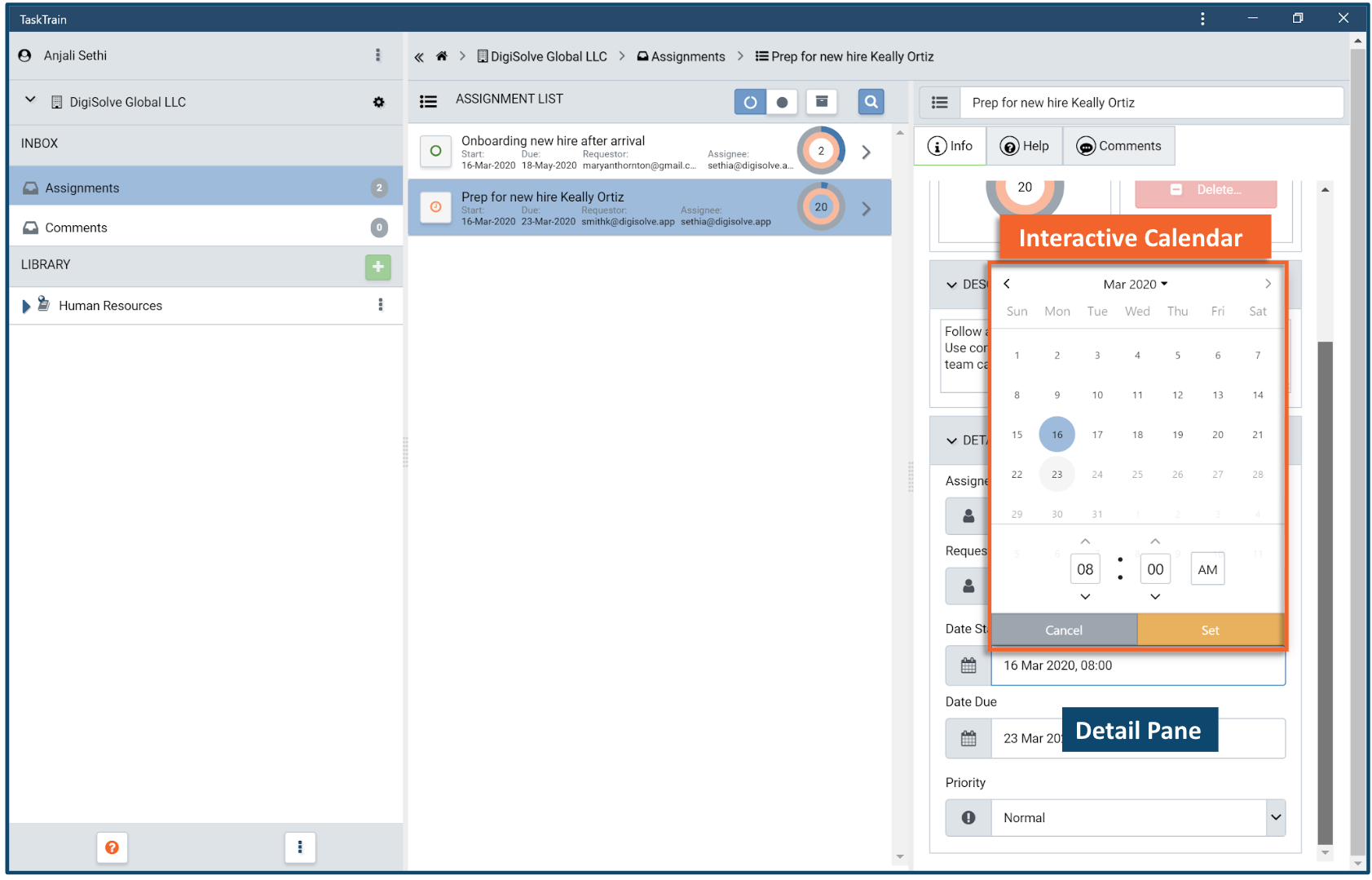 - Press the Set button to update the Date/Time Start or Date/Time Due