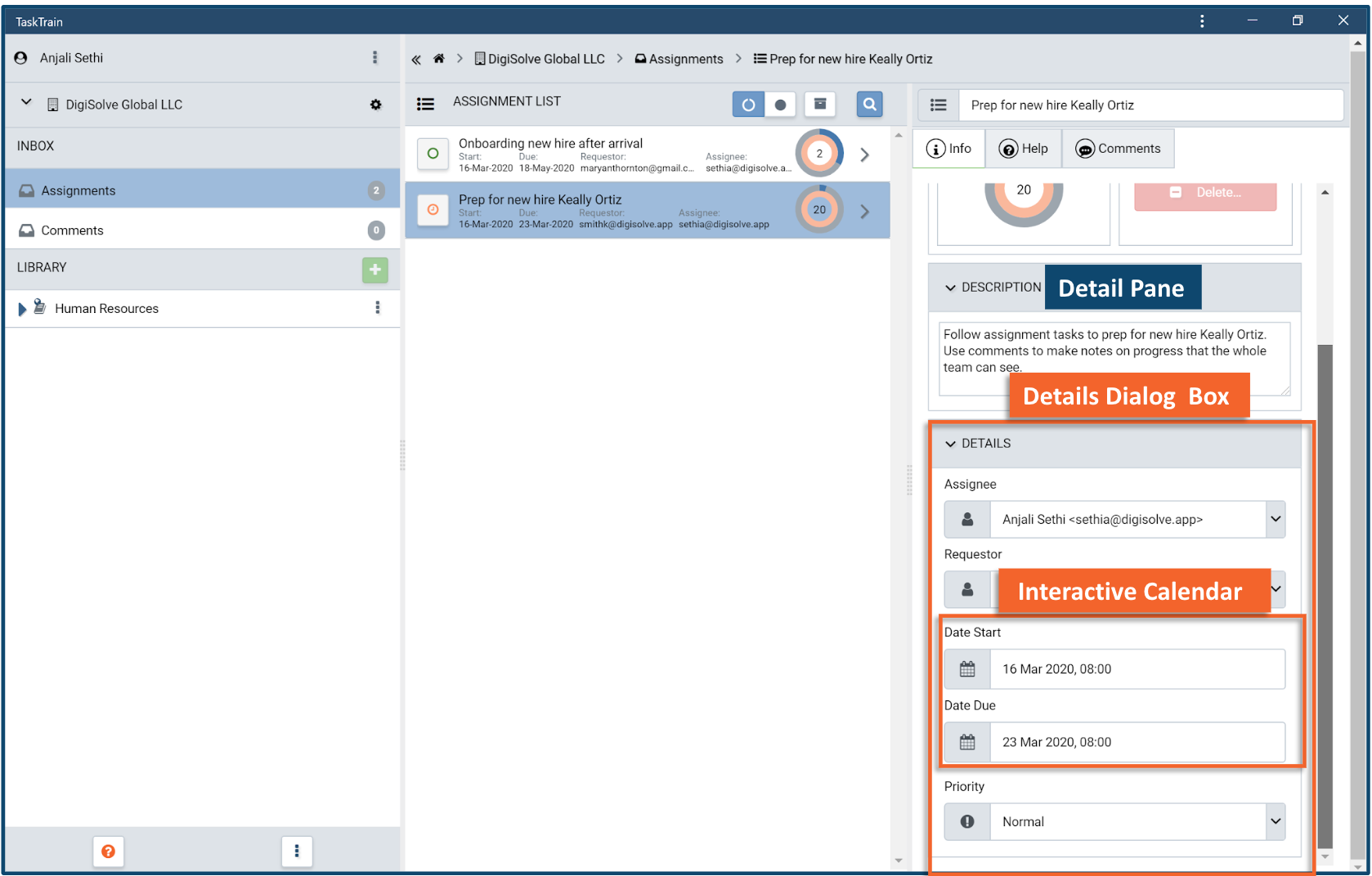 - Press the Details collapsible panel header on the Assignment Info panel to toggle it open, if necessary.