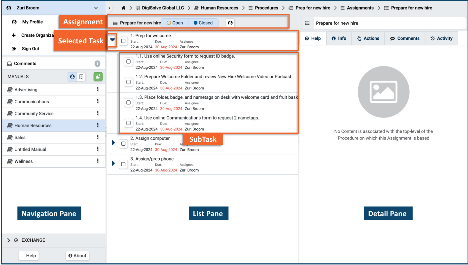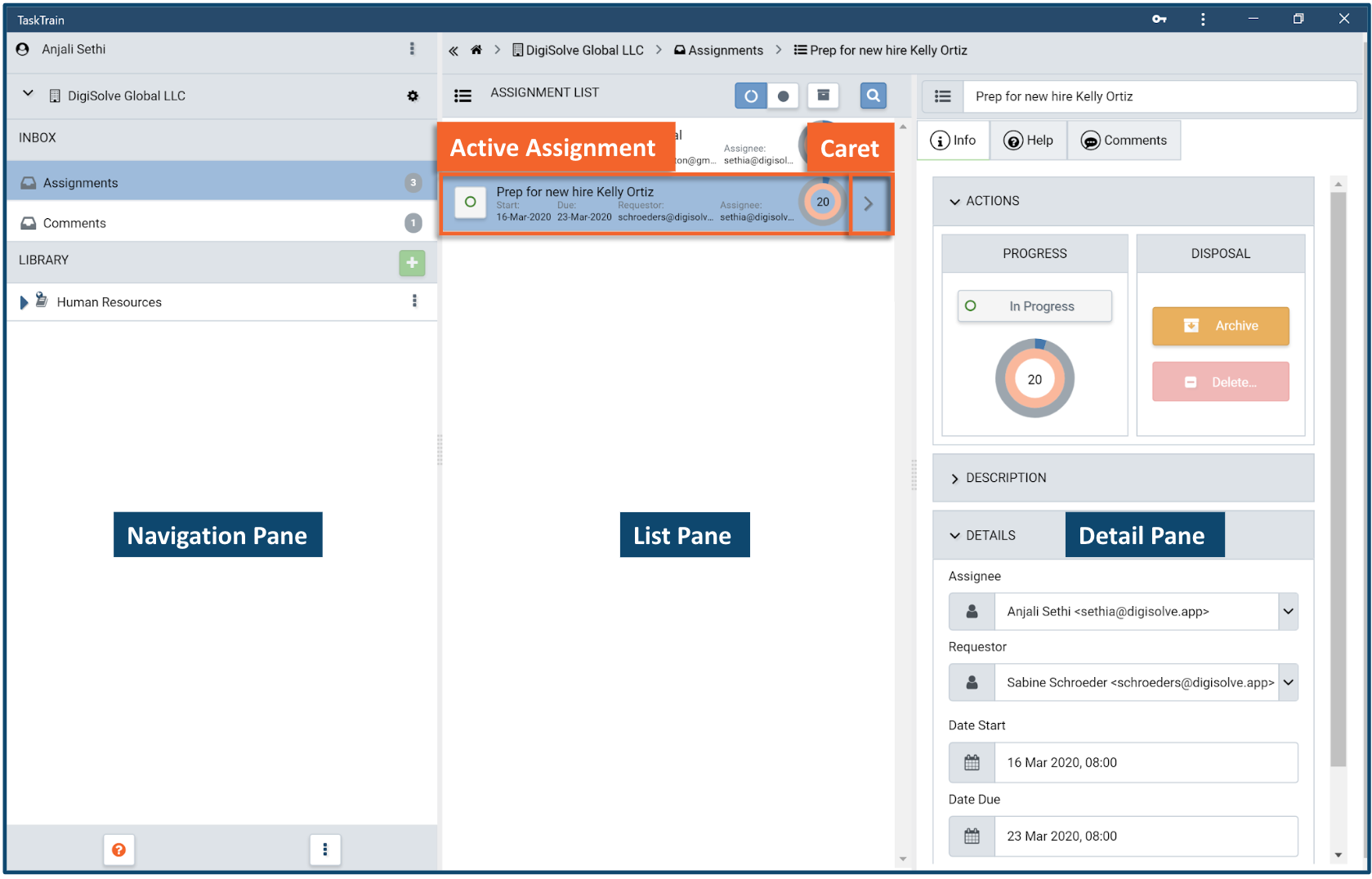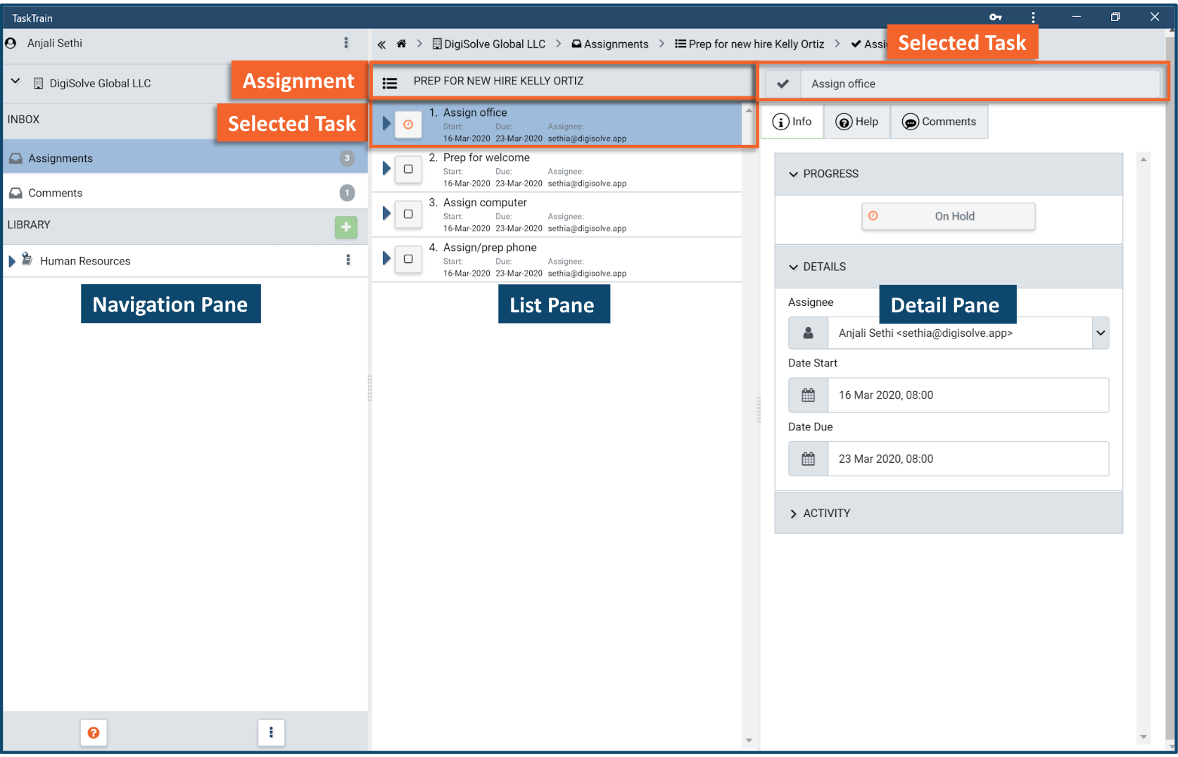 - Press the right-facing caret to the right of the Assignment name to display the Assignment's Task list.