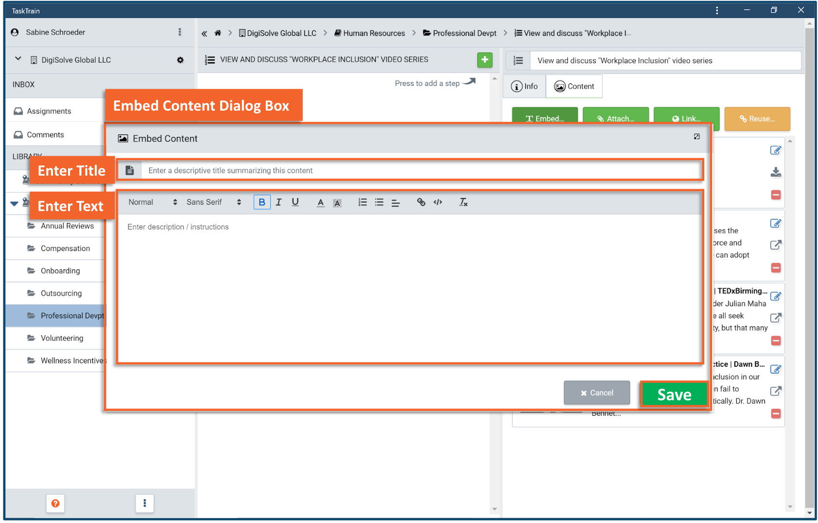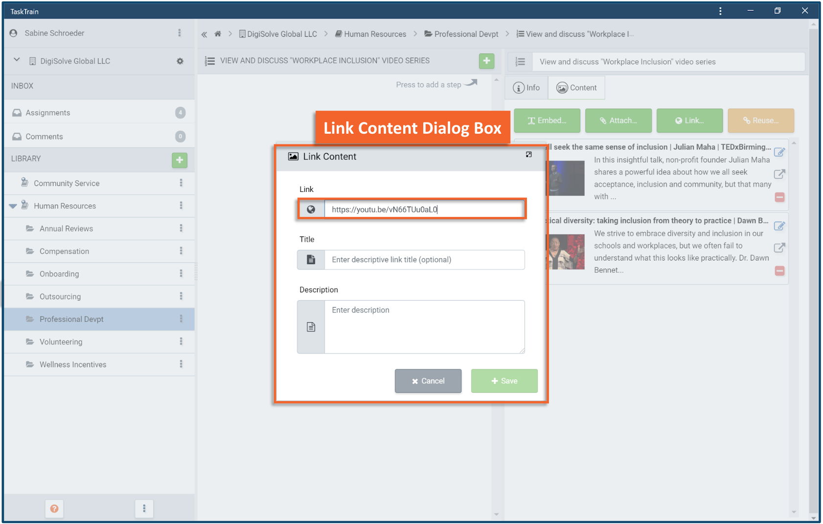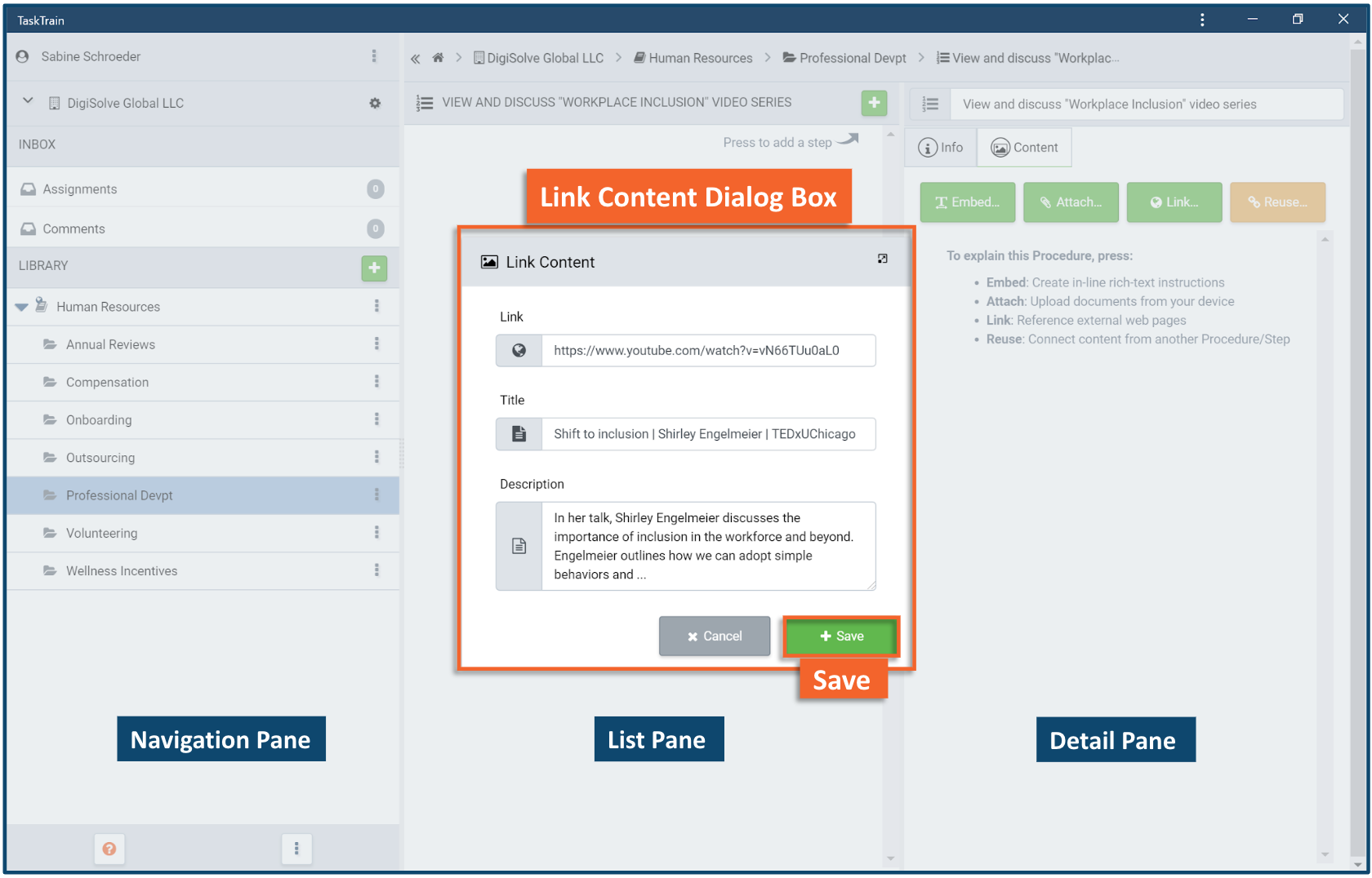 6. Press the Save button to add the Linked Content to the selected Procedure or Step: