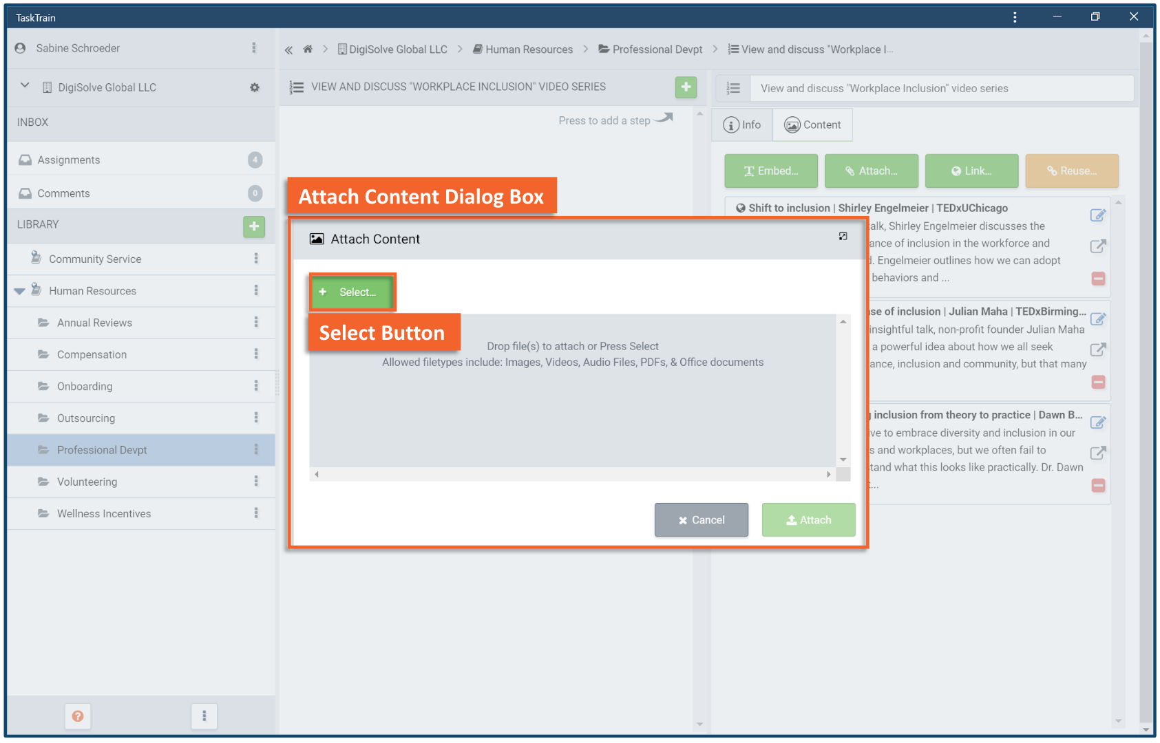 2. or, Drag & drop files from an operating system file browser window onto the Attach Content dialog drop zone.