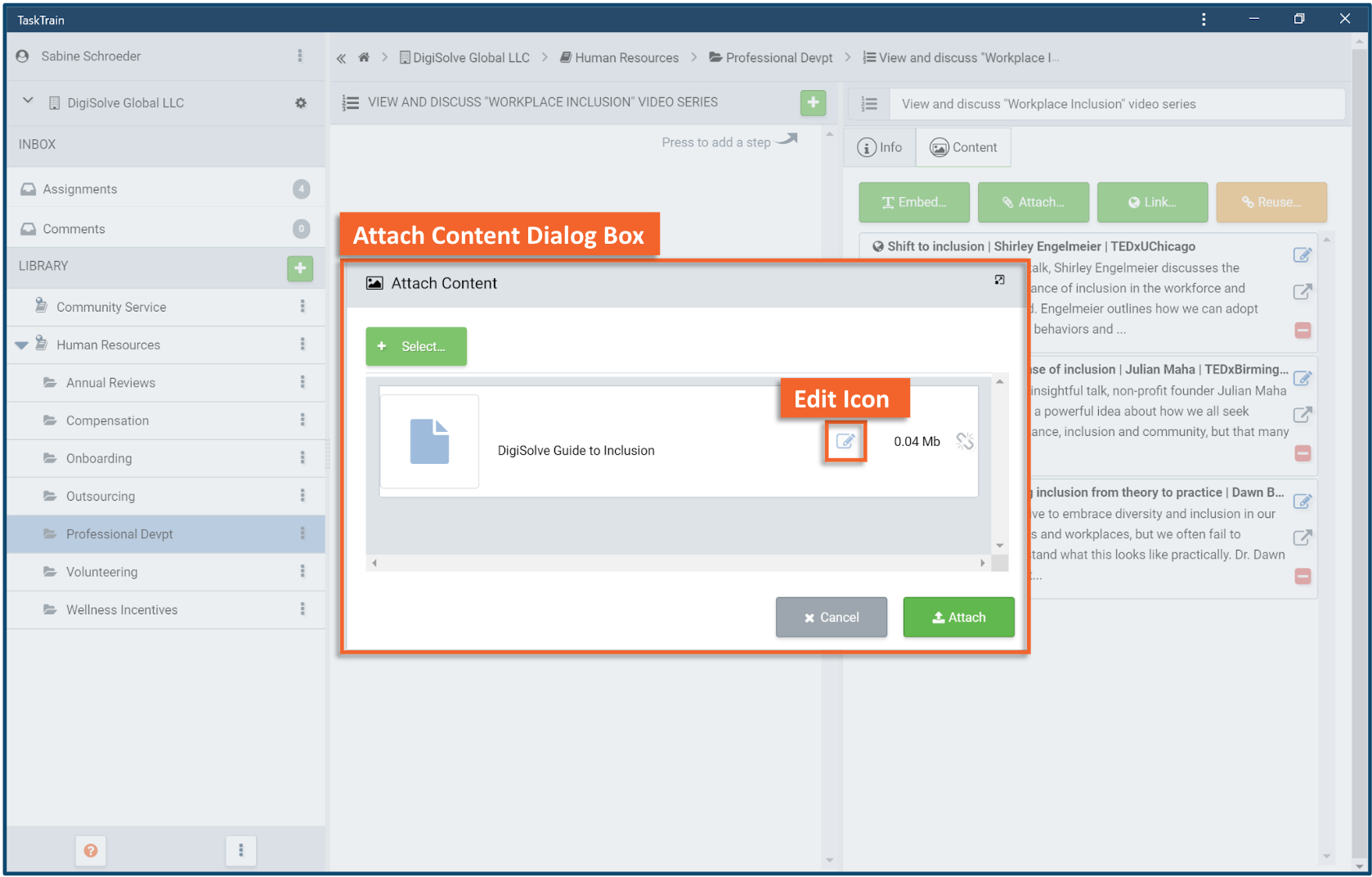 4. Press the Attach button to upload the files and associated them with the selected Procedure or Step: