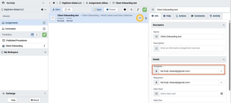 The Assignment assignee or the Administrator or Lead of the Portfolio in which the Procedure on which the Assignment is based may update the assignee.