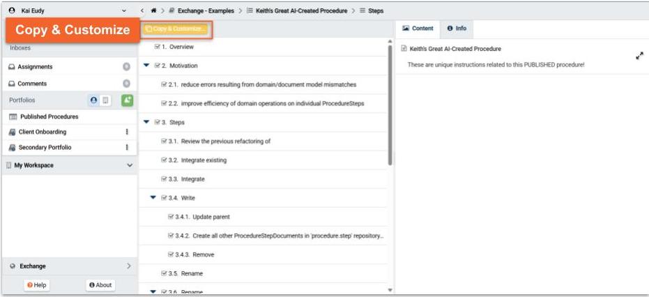 The Exchange allows you to browse procedures created by TaskTrain or shared by other users. You can easily copy any procedure into your own Organization for customization.