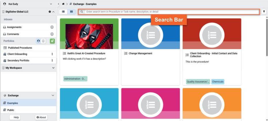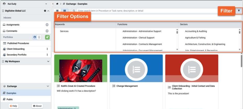 The Exchange allows you to browse procedures created by TaskTrain or shared by other users. You can search or filter to quickly find the procedures you need.