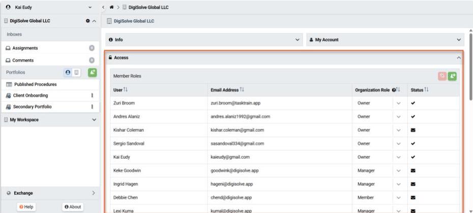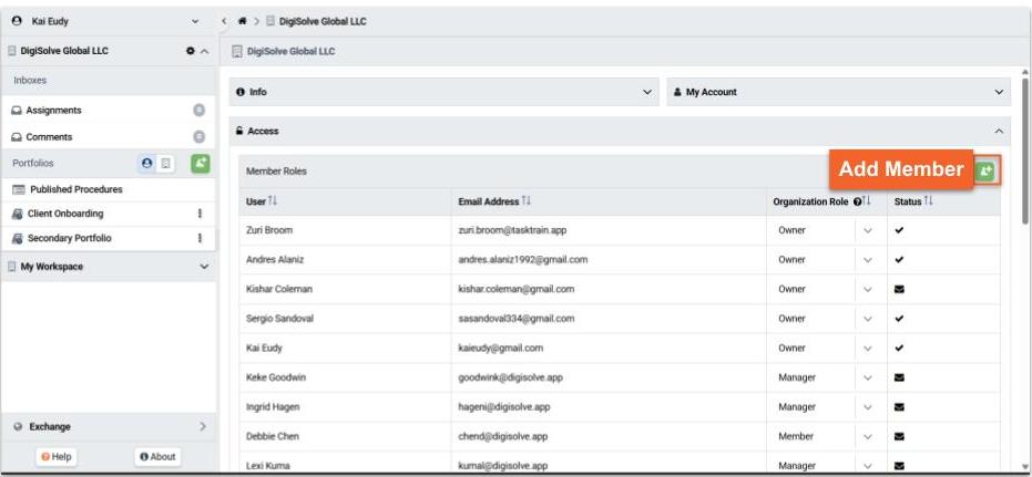 Accounts for each invited Member will be immediately available in your Organization so that they can be granted Portfolio Access and given Assignments.