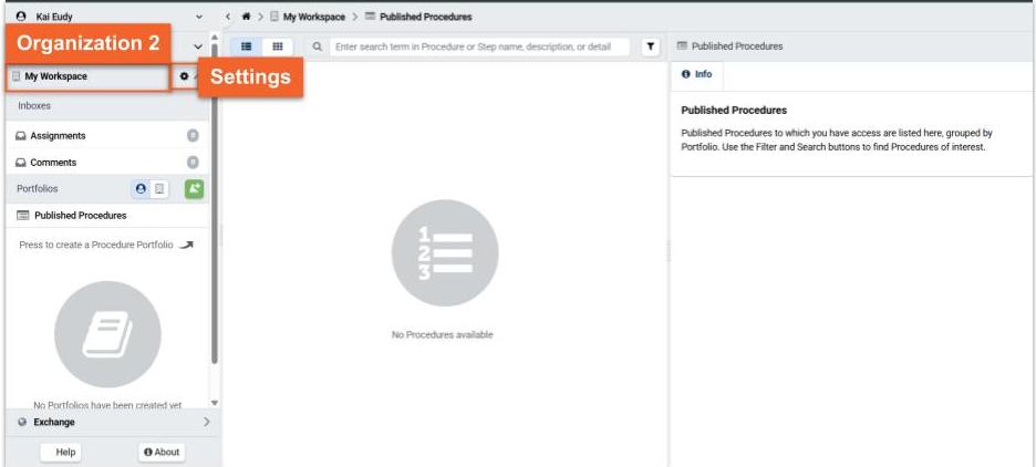 - Press the Manage Organization gear icon for the Organization in the left Navigation Pane to display Organization details.