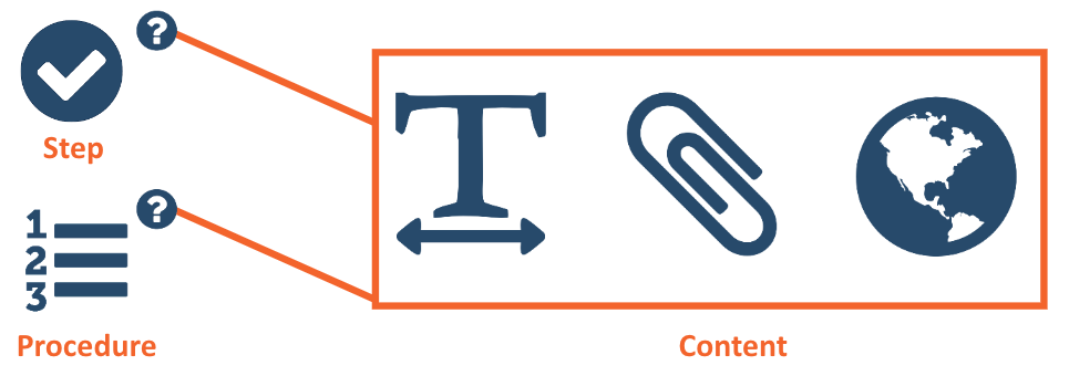 The heart of TaskTrain is the Procedure, a step-by-step outline of work instructions with optional help Content at each individual Step.