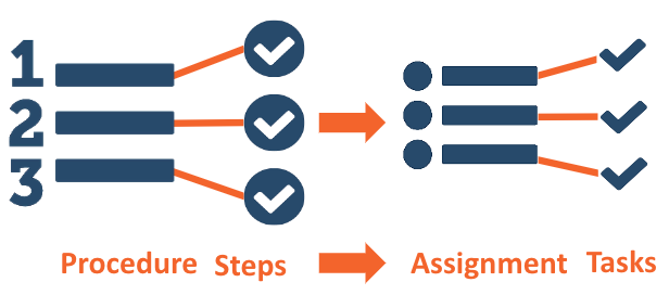 Each time work related to a Procedure arises, an Assignment may be created from that Procedure and then assigned to one or more Members of the Organization