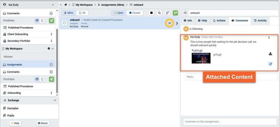 An Attachment is a file uploaded with a Comment. Note: This feature is available in paid subscriptions only.
