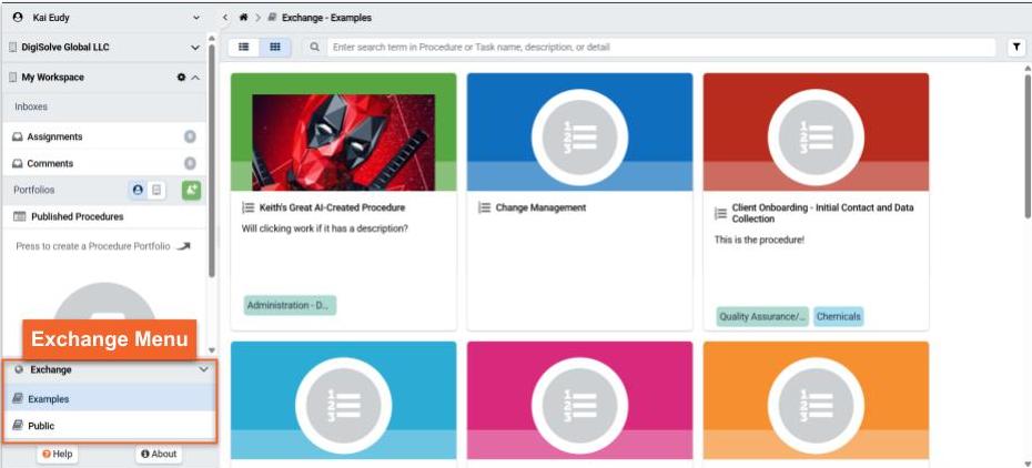 The Exchange is a shared collection of public, browsable, and searchable Procedures, which you can copy or purchase. The public Exchange allows you to easily learn from others and to download ready-made Procedures and then tweak them to meet your needs. You can contribute to others as well by sharing the work Procedures you yourself have created!