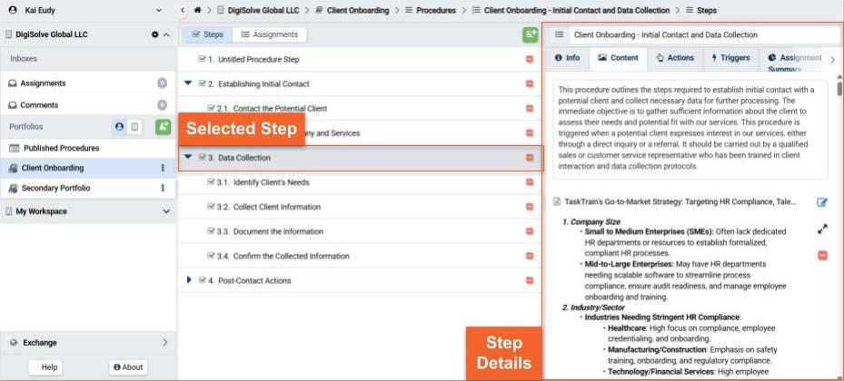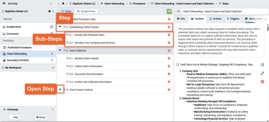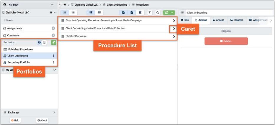 - Press the right-facing caret to the right of the Procedure name to display the Procedure's Step list.