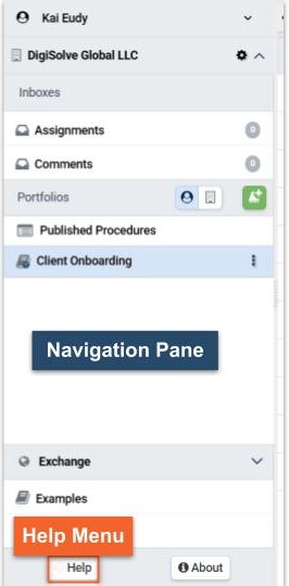 The Help menu is located at the bottom of the Navigation pane. Access the Help Menu by pressing on the "?" at the pane bottom..jpg)