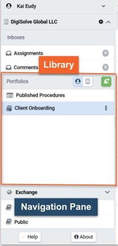 The Library panel is located within the Organization Collapsible panel and under the Inbox panel. Access the Library panel, like the Inbox panel, by pressing on the caret to the left of the Organization name. The Library holds Portfolios containing your Procedures..jpg)