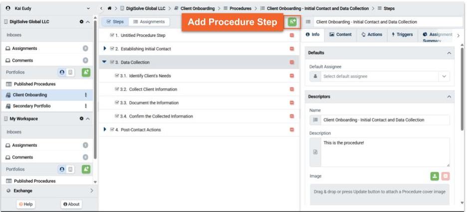 - Navigate to the Procedure's Step list by pressing the drill-down caret to the right of the Procedure name.