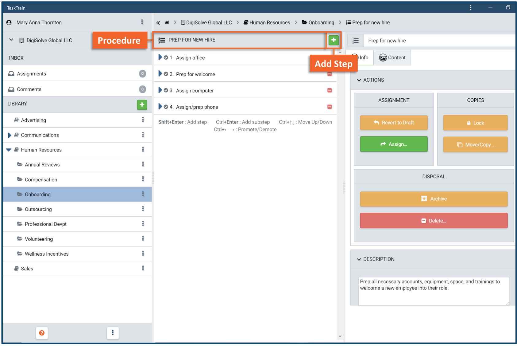 - Keyboard shortcut for child Step: Hold the Control/Command key and press Enter/Return to create a new Substep of the currently selected Step (up to 4 levels deep).