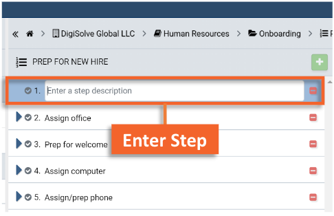 - Enter a concise, descriptive name for the Step in the input that appears.