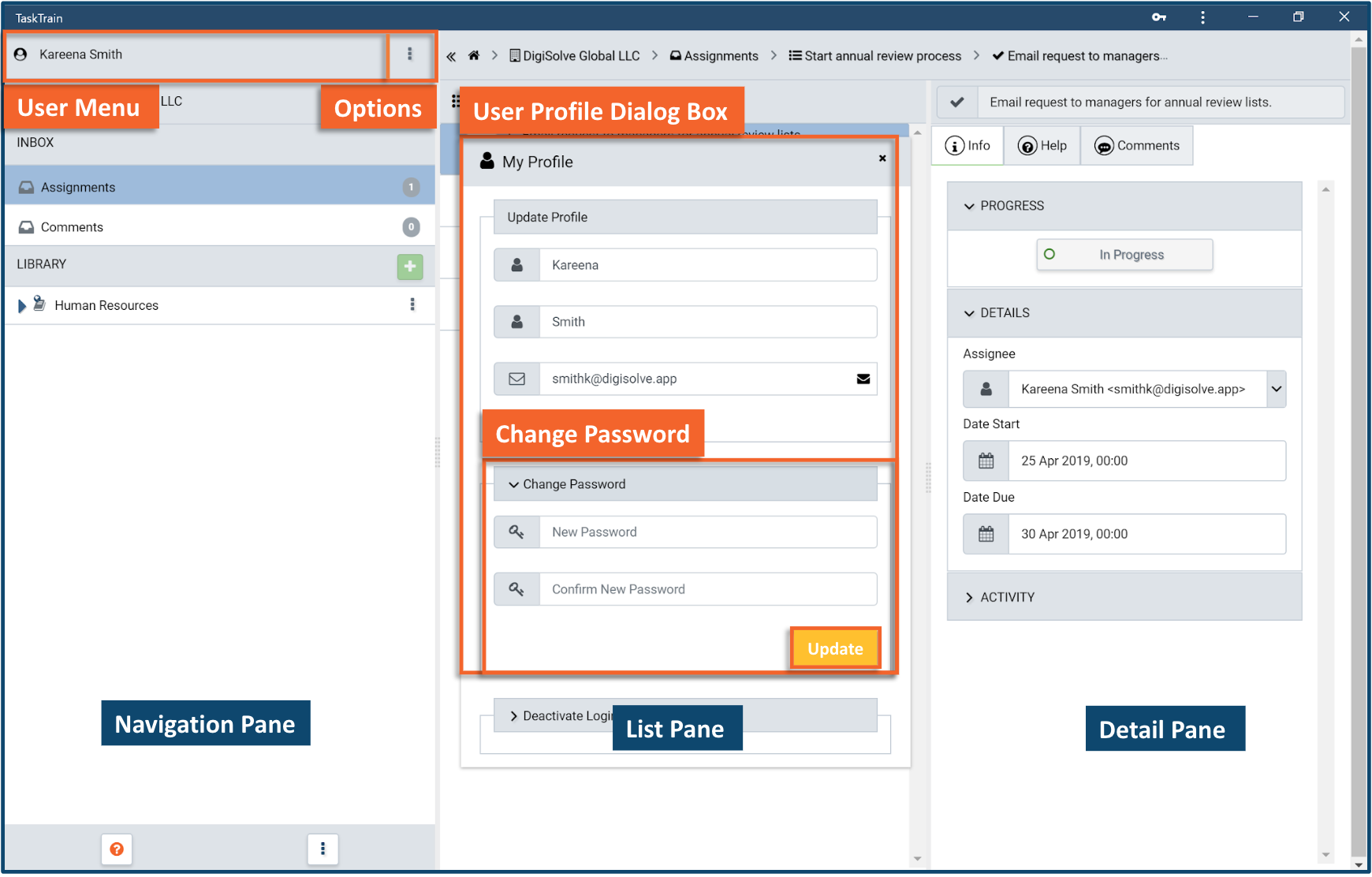 - Select My Profile from the User menu at the top of the left Navigation pane.