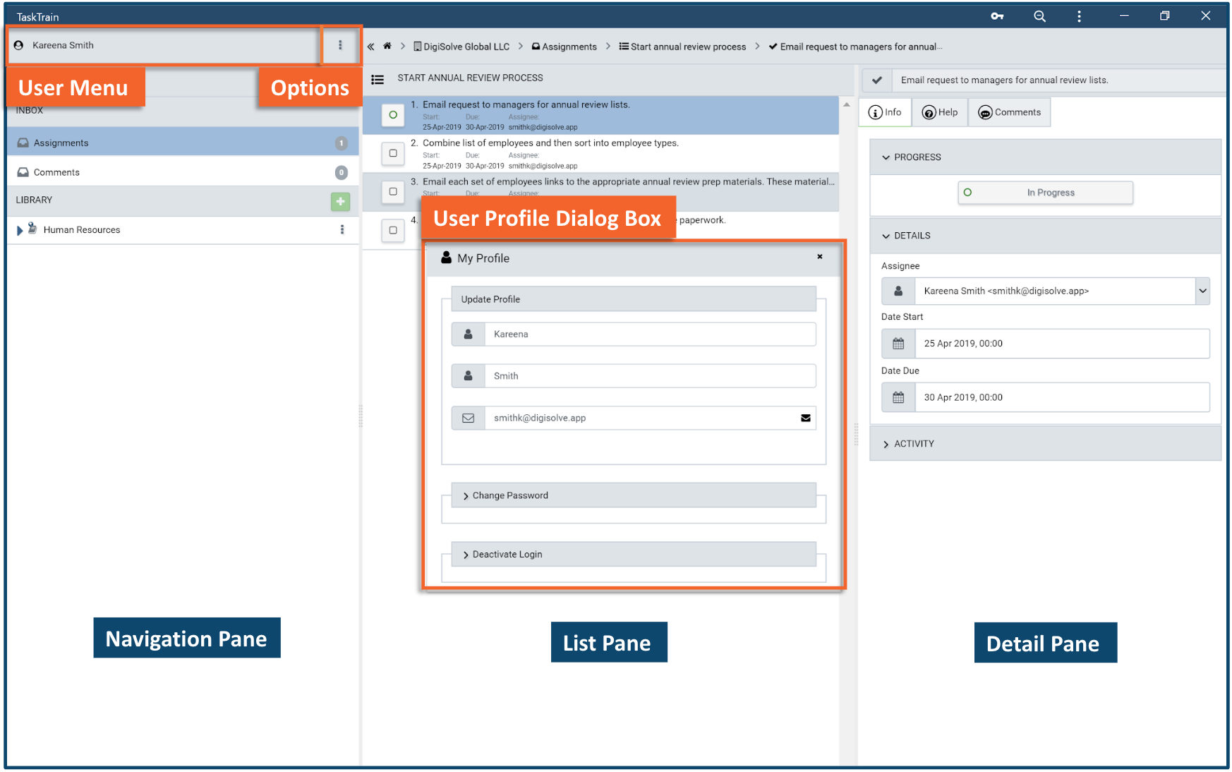 Your first/given and last/family names are shared only with TaskTrain employees for identification purposes. You may set a Display Name visible to other TaskTrain users in each Organization to which you belong.